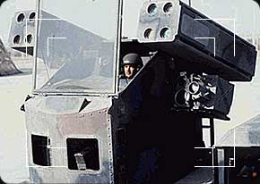 An Avenger Crewmember sits inside a 360-degree rotating turret station for possible targets. The Avenger is capable of holding 8 Stinger missiles in a Standard Vehicle Mounted Launcher (SVML).